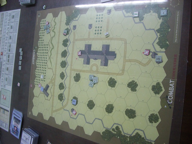 This scenario reflects a meeting encounter between Canadians and Germans in Belgium and its is played using Map 20. Here is the initial set-up.